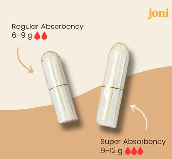 Nos tampons en coton biologique certifié offrent une protection naturelle et sans parfum. Testés et certifiés exempts de toxines nocives, ils n'irritent pas le vagin. De plus, les tampons sans applicateur Joni réduisent votre empreinte carbone à chaque cycle ! Insérez simplement votre tampon avec votre doigt, contrairement à un applicateur en plastique traditionnel qui est simplement jeté. Contient 16 tampons à absorption standard. Les tampons standard absorbent entre 6 et 9 g de sang. Certifiés biologiques (certifiés GOTS OCS Oeko-Tex Standard 100). Emballage compostable en plastique d'origine végétale (biodégradable BPI et OK Compost). Approuvé par Santé Canada et la FDA. Coton biologique certifié GOTS OCS et OEKO-TEX 100, ce qui garantit qu'ils ne contiennent aucune substance ou produit chimique nocif comme les nitrates, les métaux lourds, le formaldéhyde, le dioxyde de titane et le chlore. Pourquoi les tampons Joni n'ont-ils pas d'applicateur ? Les tampons Joni sont sans applicateur afin de réduire les déchets. Les tampons Joni sont les plus populaires en Europe. On les appelle communément « tampons numériques » car ils s'insèrent avec les doigts. Les tampons Joni sont dotés d'une extrémité incurvée pour une insertion facile et d'un cordon noué pour un retrait aisé. Quel degré d'absorption choisir ? Les tampons Joni sont disponibles en trois degrés d'absorption : normal et super. Choisissez toujours le degré d'absorption le plus faible en fonction de votre flux. Si vous débutez avec les tampons, commencez par les tampons Joni standard et passez au super si nécessaire. Les tampons doivent être changés toutes les quatre heures et jamais plus de huit heures.
