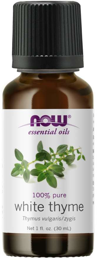 Thymus vulgaris/zygis Ingrédients : Huile essentielle de thym blanc pur Arôme : Agréable et piquant Avantages : Édifiant, stimulant et clarifiant Se mélange bien avec : Huile essentielle de basilic, huile essentielle de lavande, huile essentielle de citron, huile essentielle de marjolaine Méthode d'extraction : Distillée à la vapeur à partir des sommités fleuries de la plante