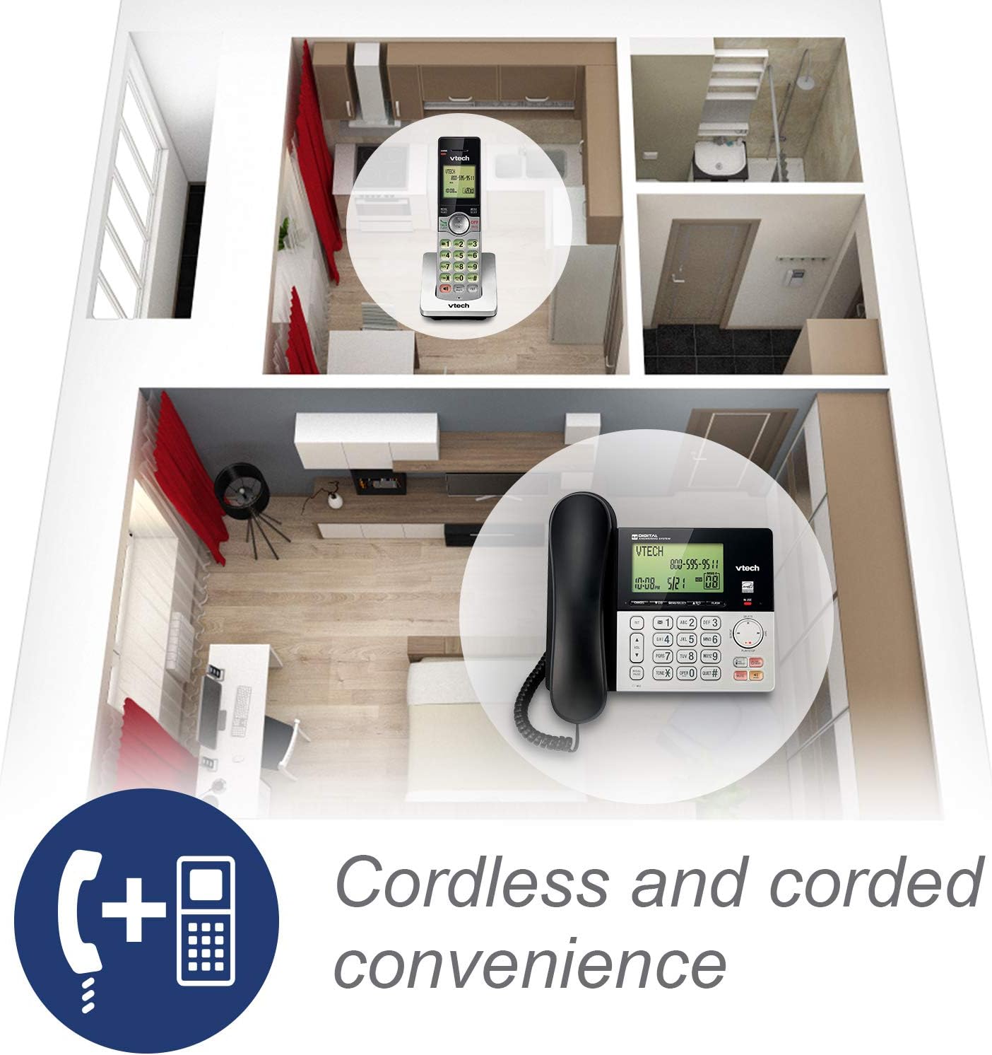VTech CS6949 DECT 6.0 Corded/Cordless Telephone System, Black/Silver