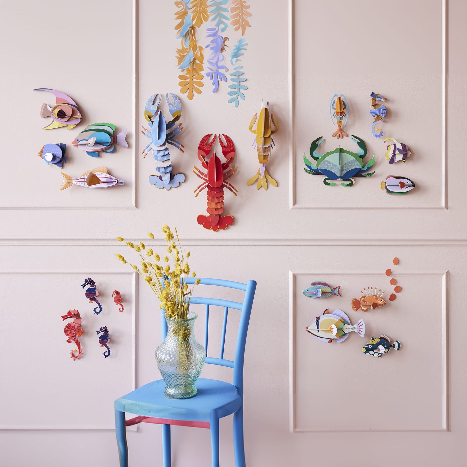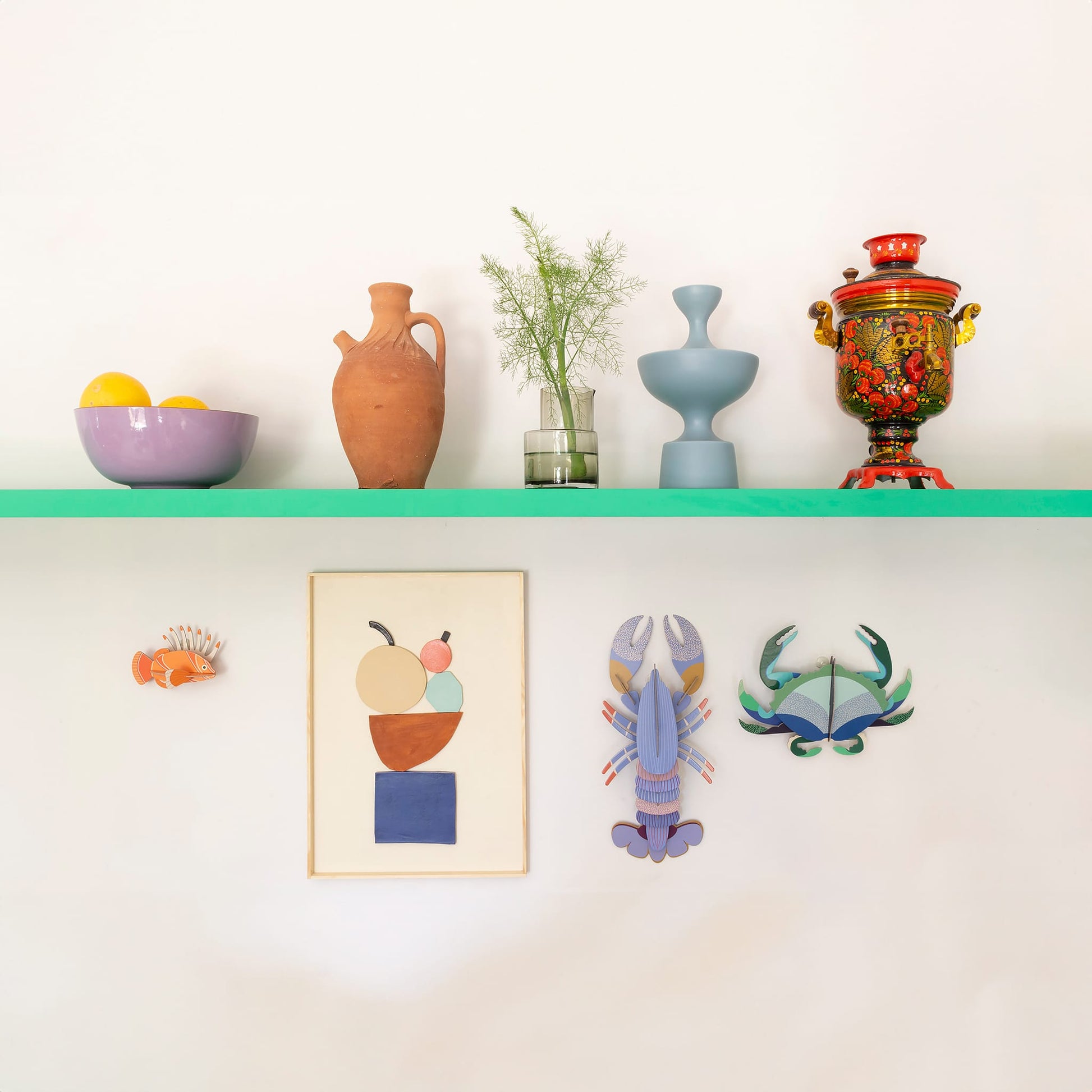The Lavender Lobster by Studio Roof brings the beauty and mystery of the ocean into your home. Inspired by the vibrant underwater world, this 3D wall art captures the delicate yet powerful presence of marine life. Crafted from recycled cardboard and printed with vegetable inks, it offers an eco-friendly way to celebrate nature.