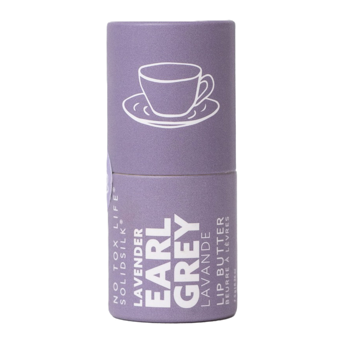 NO TOX LIFE - LIP BUTTER - Lavender Earl Grey: an herbal and citrus essential oil blend, with a hint of sweet, packaged in a zero-waste paperboard push-up tube.