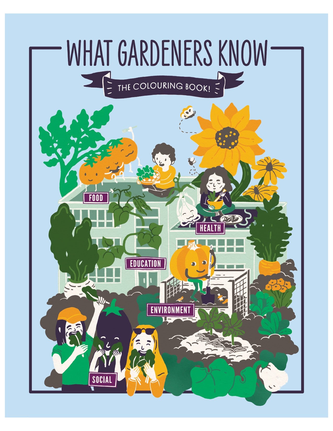 Green Thumbs Growing Kids supporters can now grow their gardening knowledge with this educational colouring book! In What Gardeners Know children ages 6-14 discover what’s in a garden… from soil to fruits and veggies flowers pollinators and people!